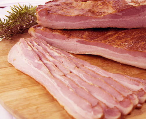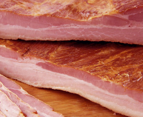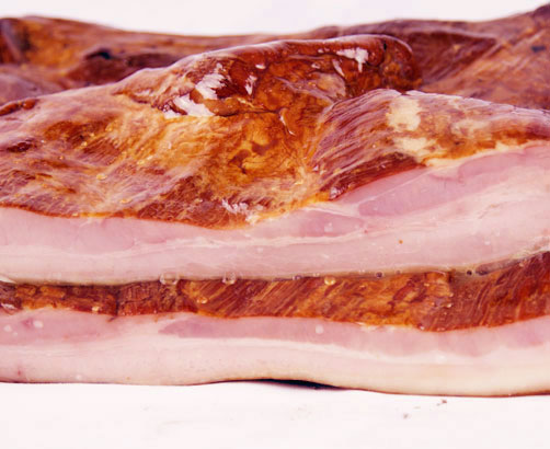 La Panceta Ahumada proviene del corte especialmente seleccionado de la panceta del cerdo, corte sometido a un proceso de cura con sal y ahumado natural en hornos.